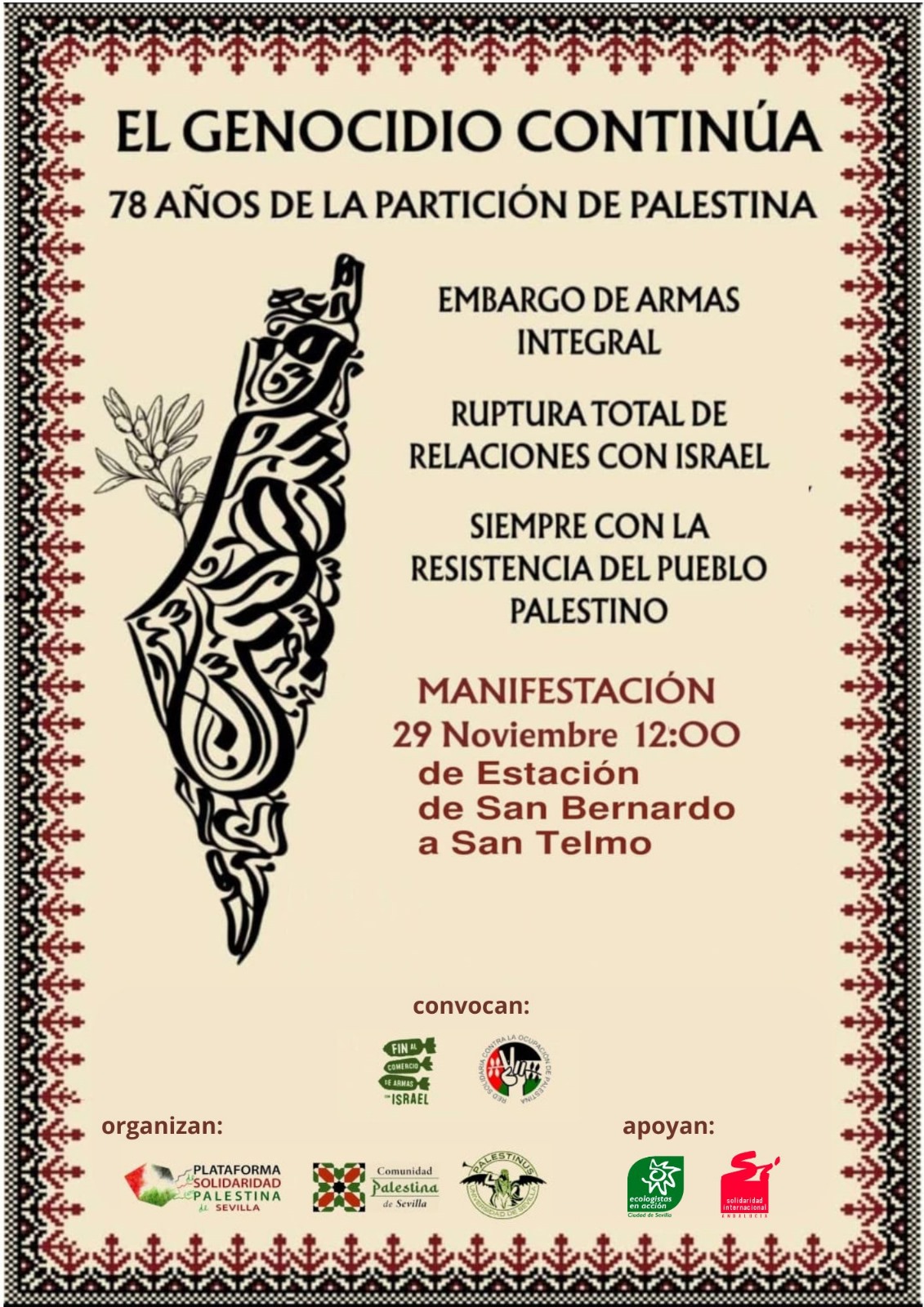 Manifestación en Sevilla. El genocidio continúa. 78 años de la partición de Palestina