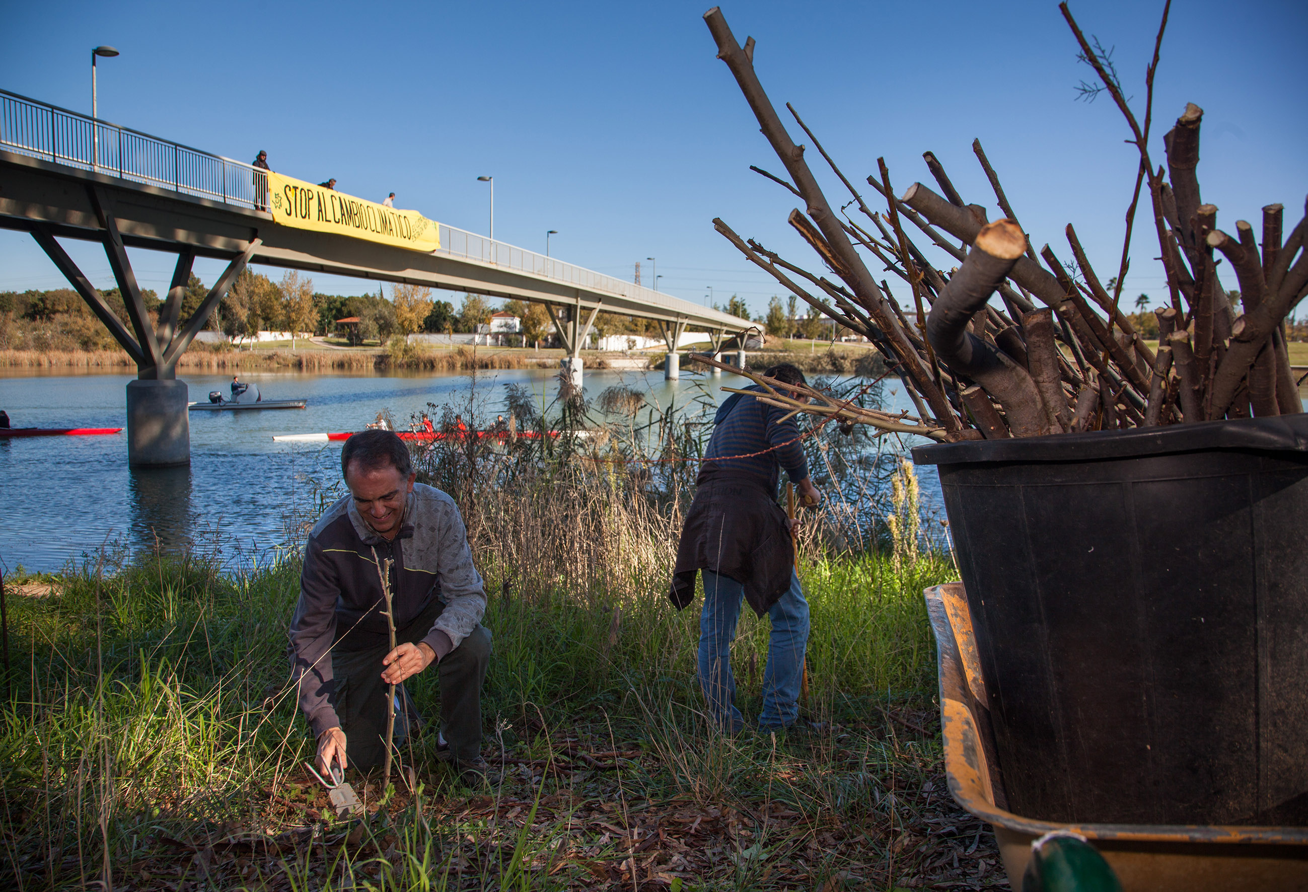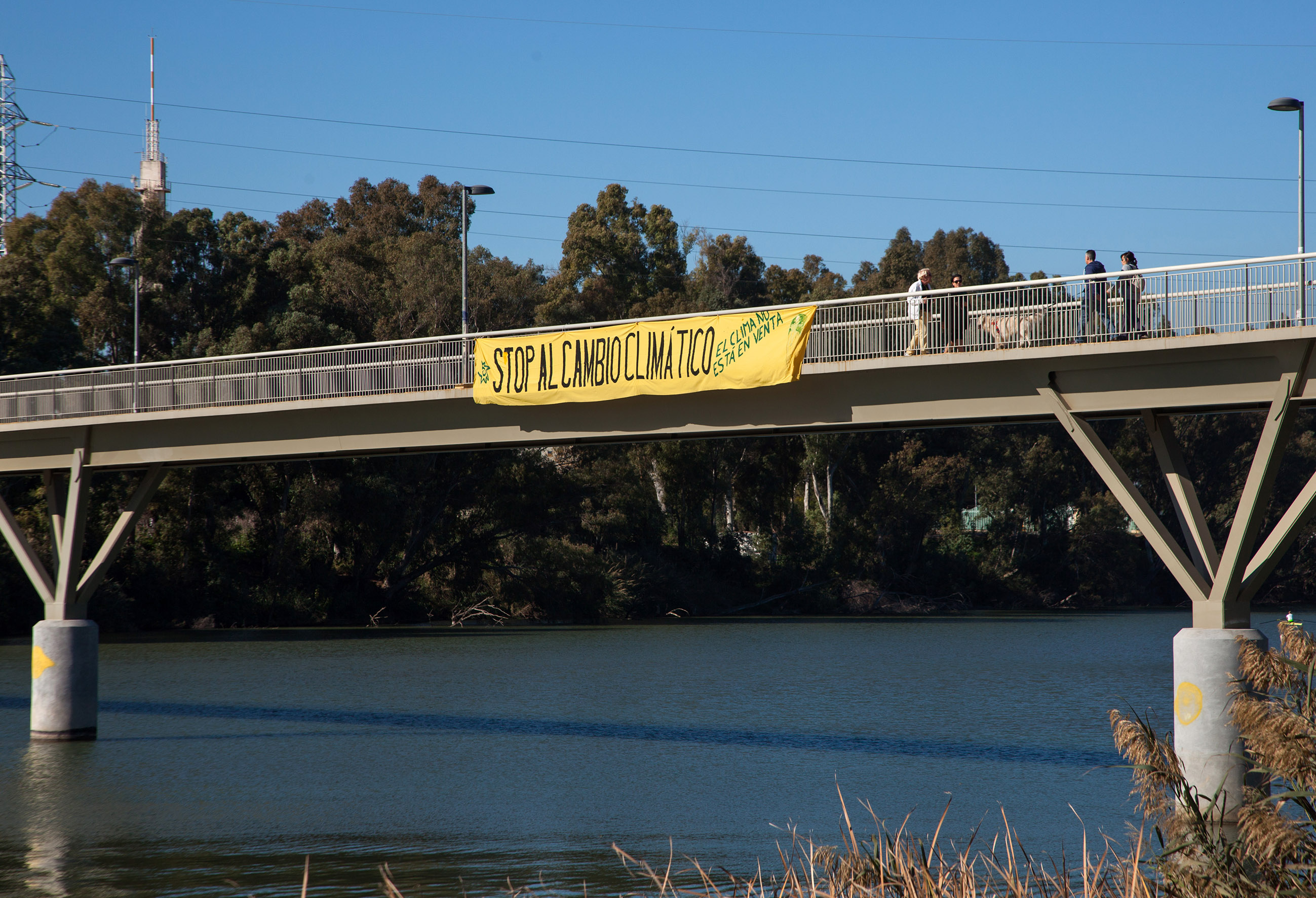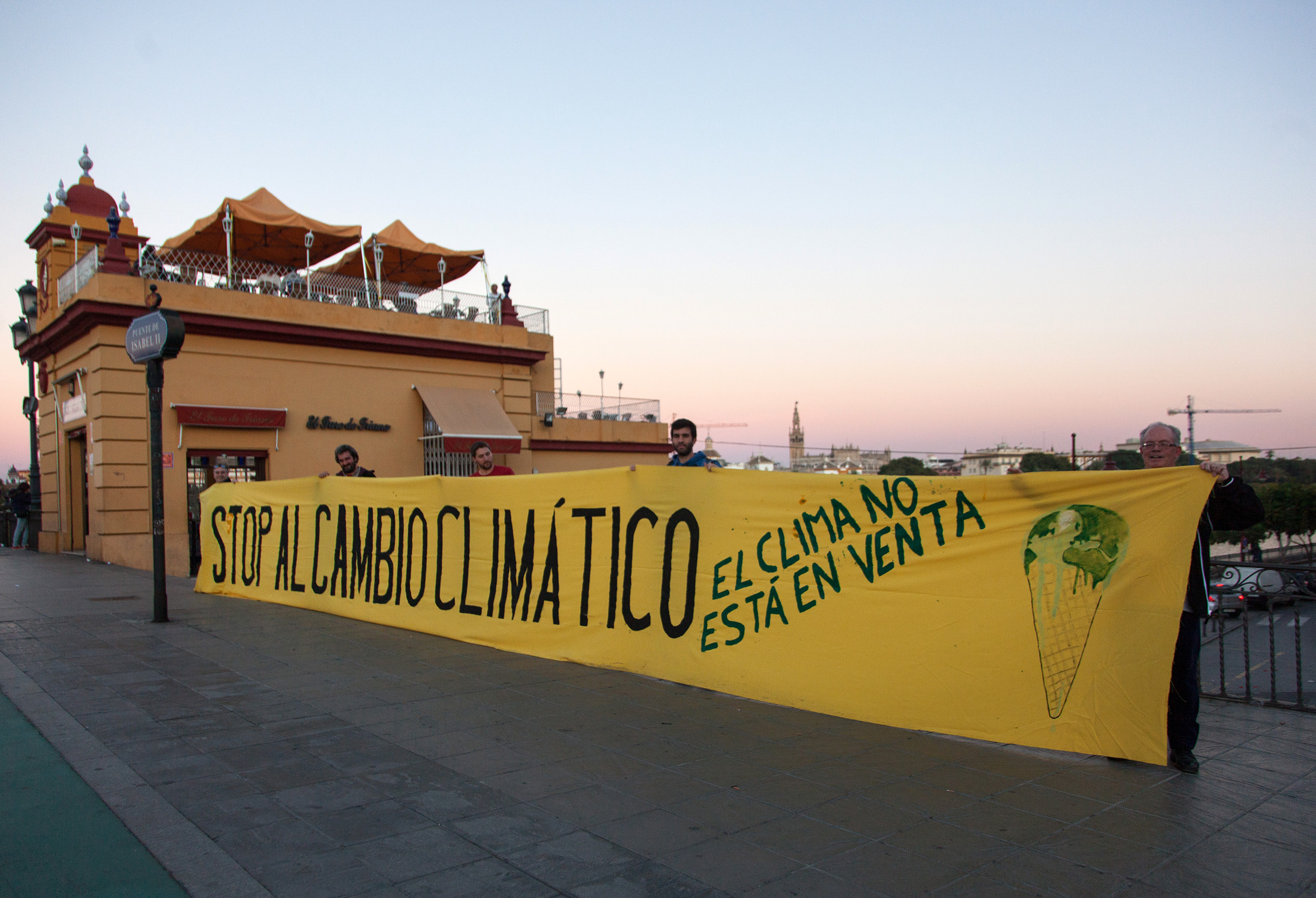 climático. Ecologistas en Acción colgó una pancarta en el Puente de Triana para concienciar sobre la necesidad de frenar el cambio climático. El sábado 29 de noviembre realizamos una plantación como gesto simbólico de lo que se puede hacer para frenar el cambio climático. Aquí tienes unas fotos de estas acciones. Viernes 27 de Noviembre de 2015, Puente de Triana ![]() ![]() ![]() ![]() ![]() Domingo 29 de Noviembre,