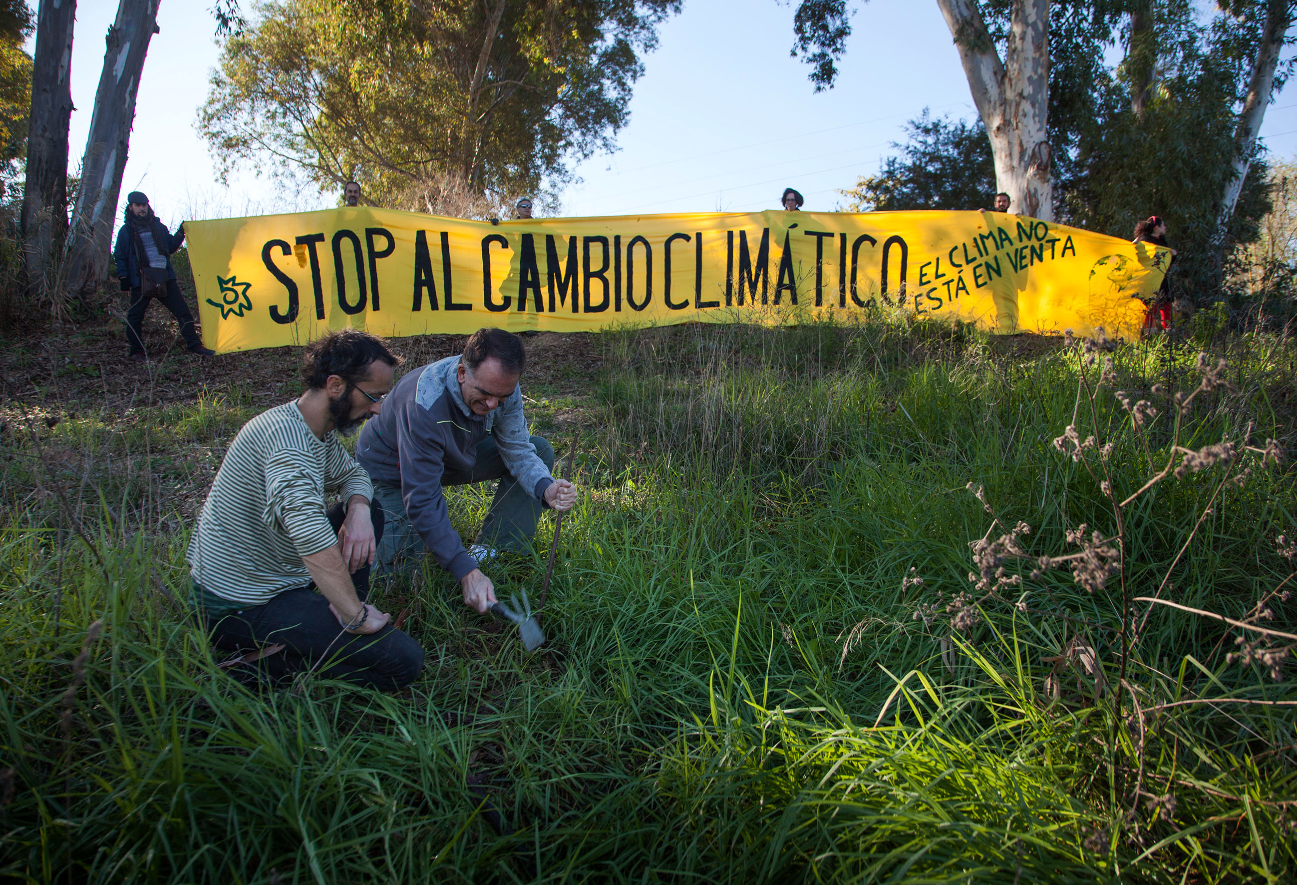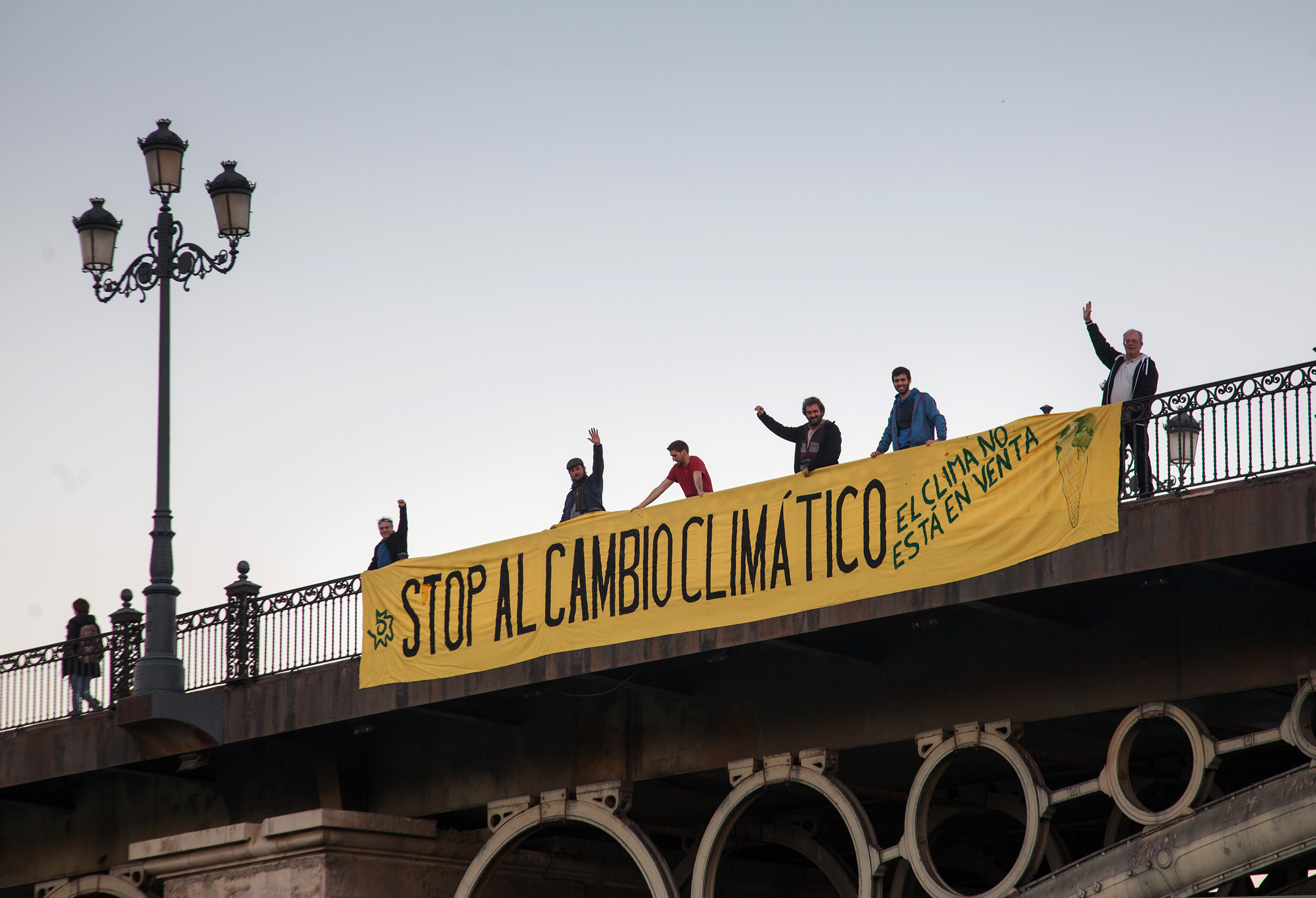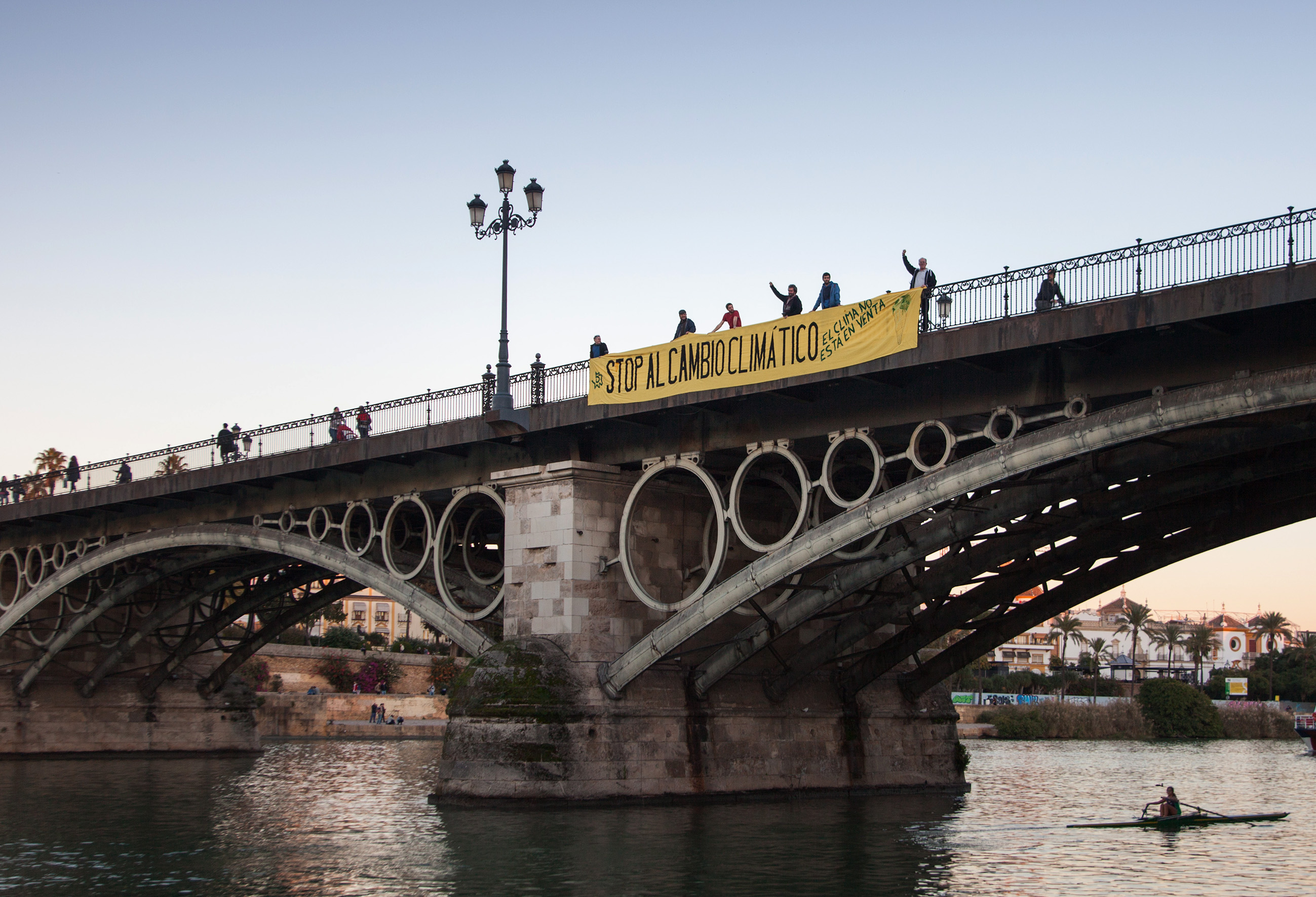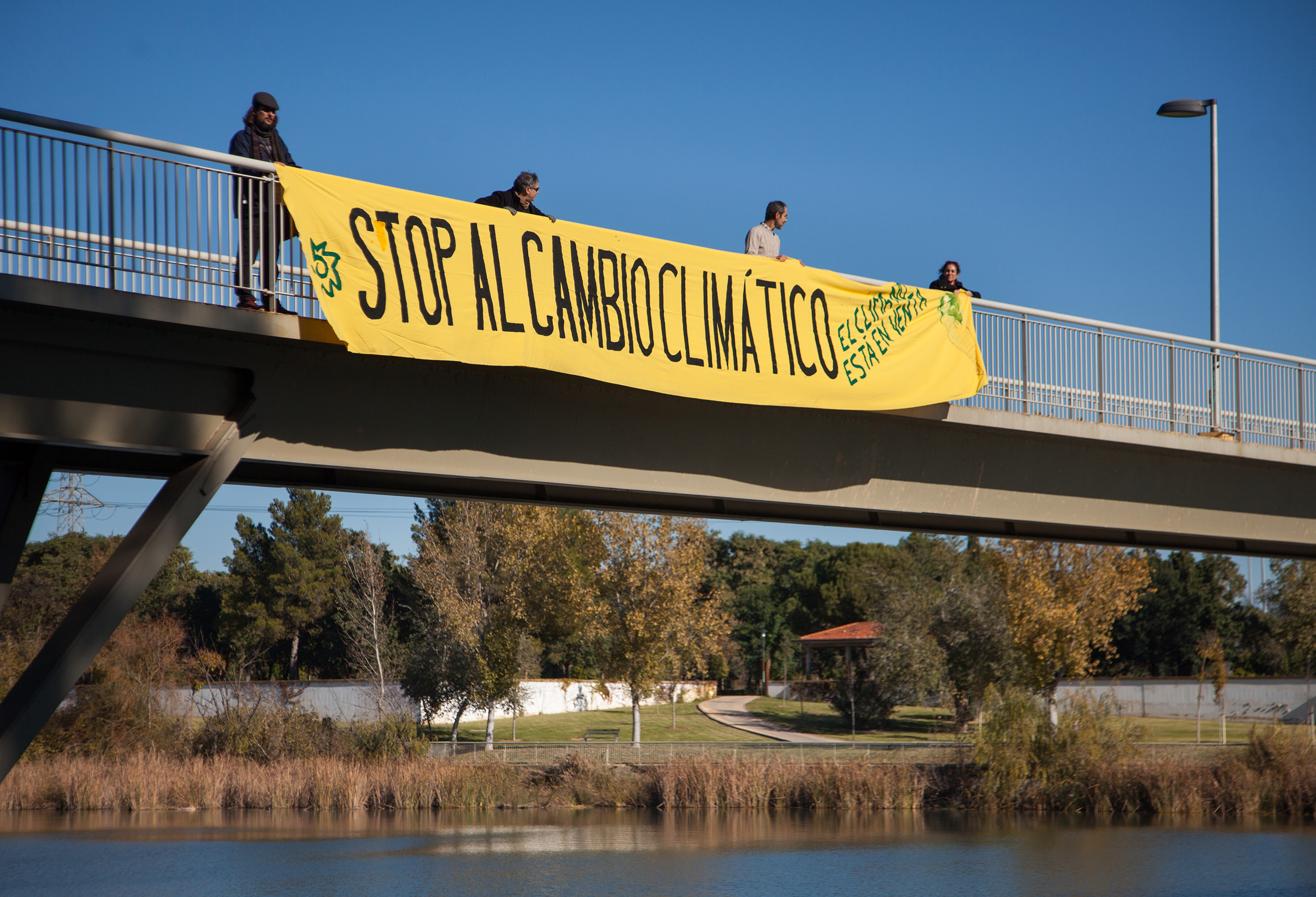 climático. Ecologistas en Acción colgó una pancarta en el Puente de Triana para concienciar sobre la necesidad de frenar el cambio climático. El sábado 29 de noviembre realizamos una plantación como gesto simbólico de lo que se puede hacer para frenar el cambio climático. Aquí tienes unas fotos de estas acciones. Viernes 27 de Noviembre de 2015, Puente de Triana ![]() ![]() ![]() ![]() ![]() Domingo 29 de Noviembre,
